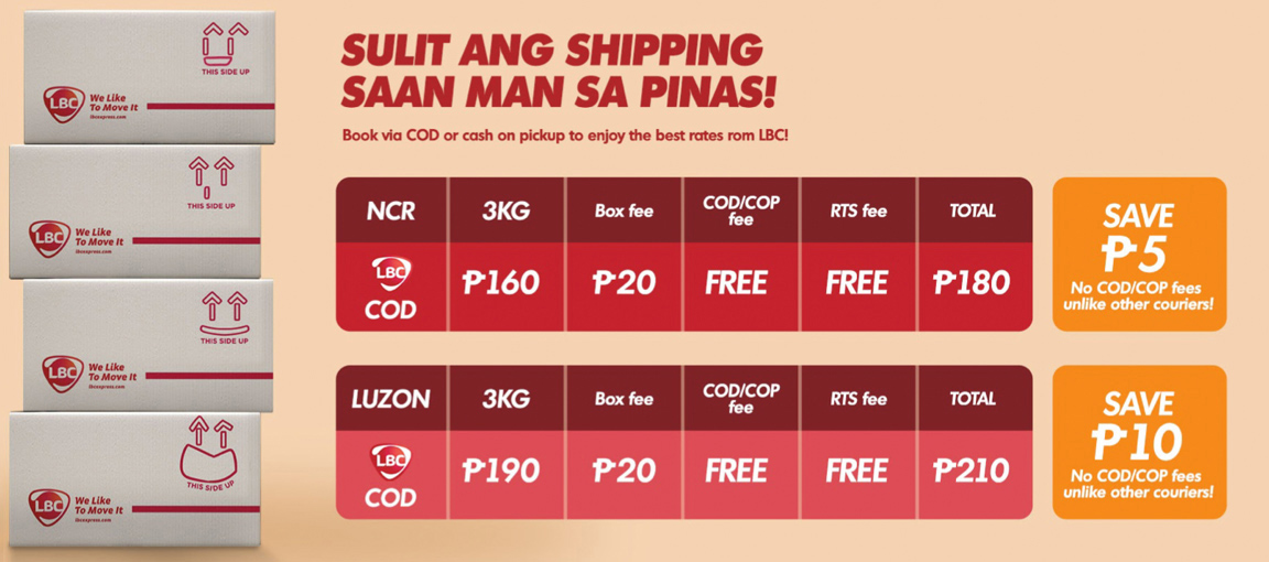 Please feel free to send us a message or contact any LBC Express branch for LBC COD shipping fees.
